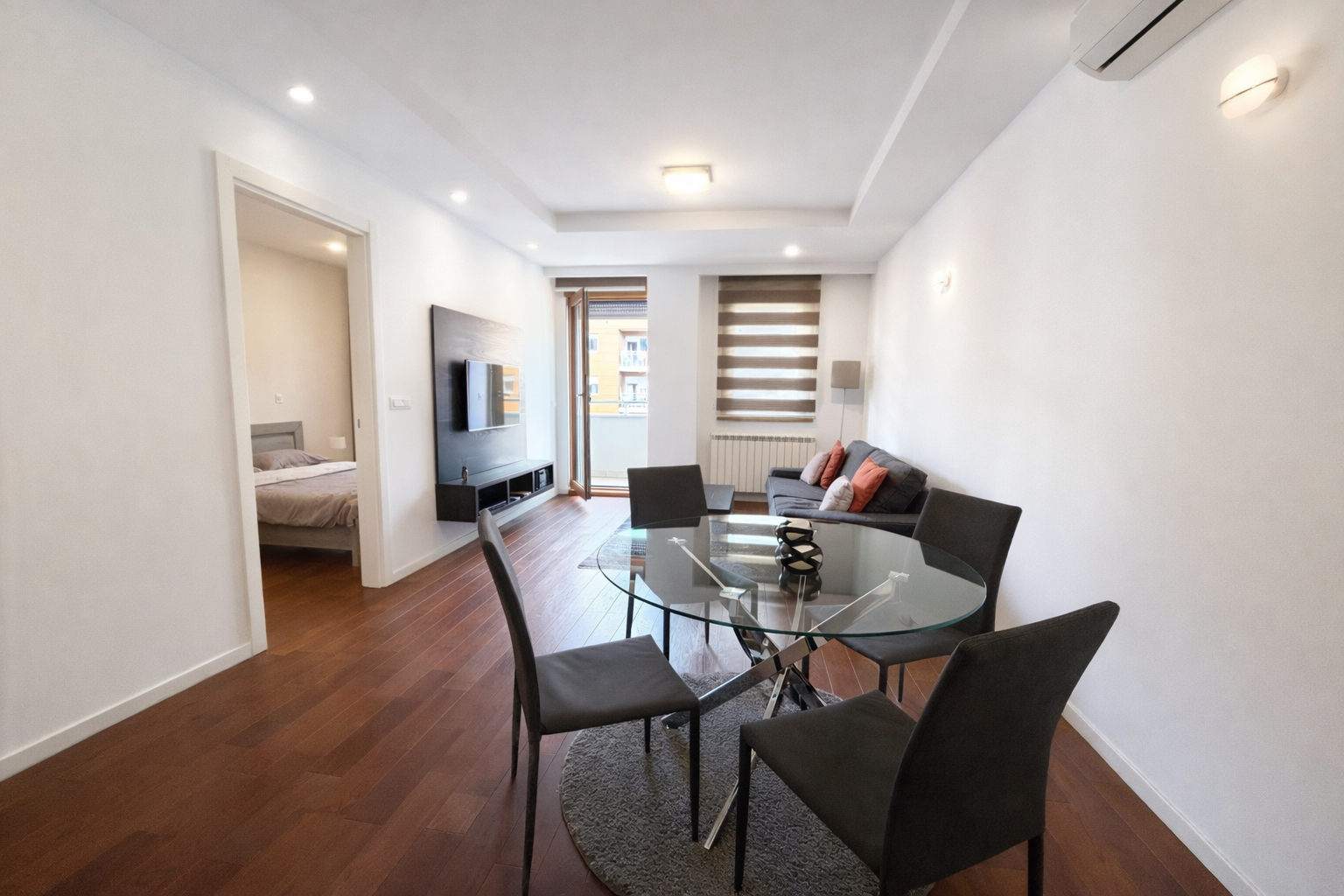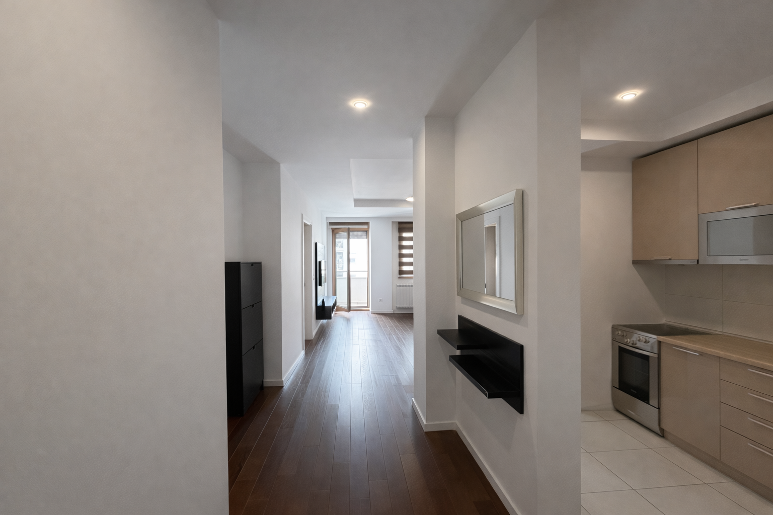 Stan je odlično organizovan i sastoji se od prostranog dnevnog boravka sa kuhinjom i trpezarijom, komforne spavaće sobe, kupatila i terase. Zahvaljujući optimalnom rasporedu i savremenoj gradnji, pruža maksimalnu udobnost kako za život tako i za izdavanje.